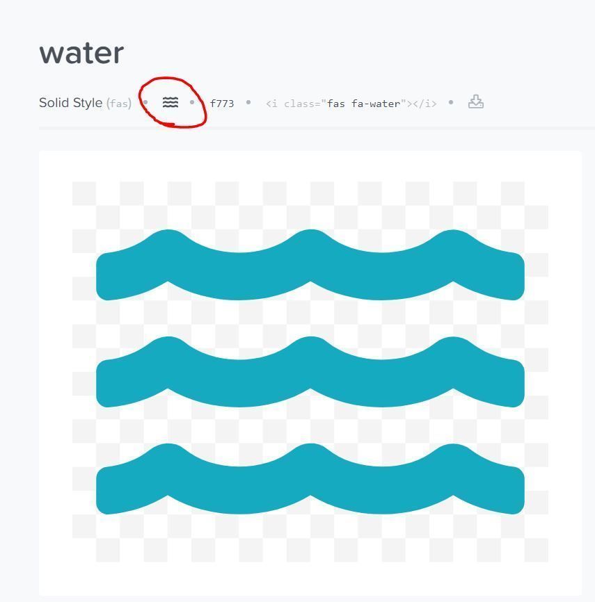 Auf der Seite von FontAwesome suchst du dir einfach ein geeignetes Symbol aus, klicke auf dem umkringelten Bereich um das Symbol zu kopieren.