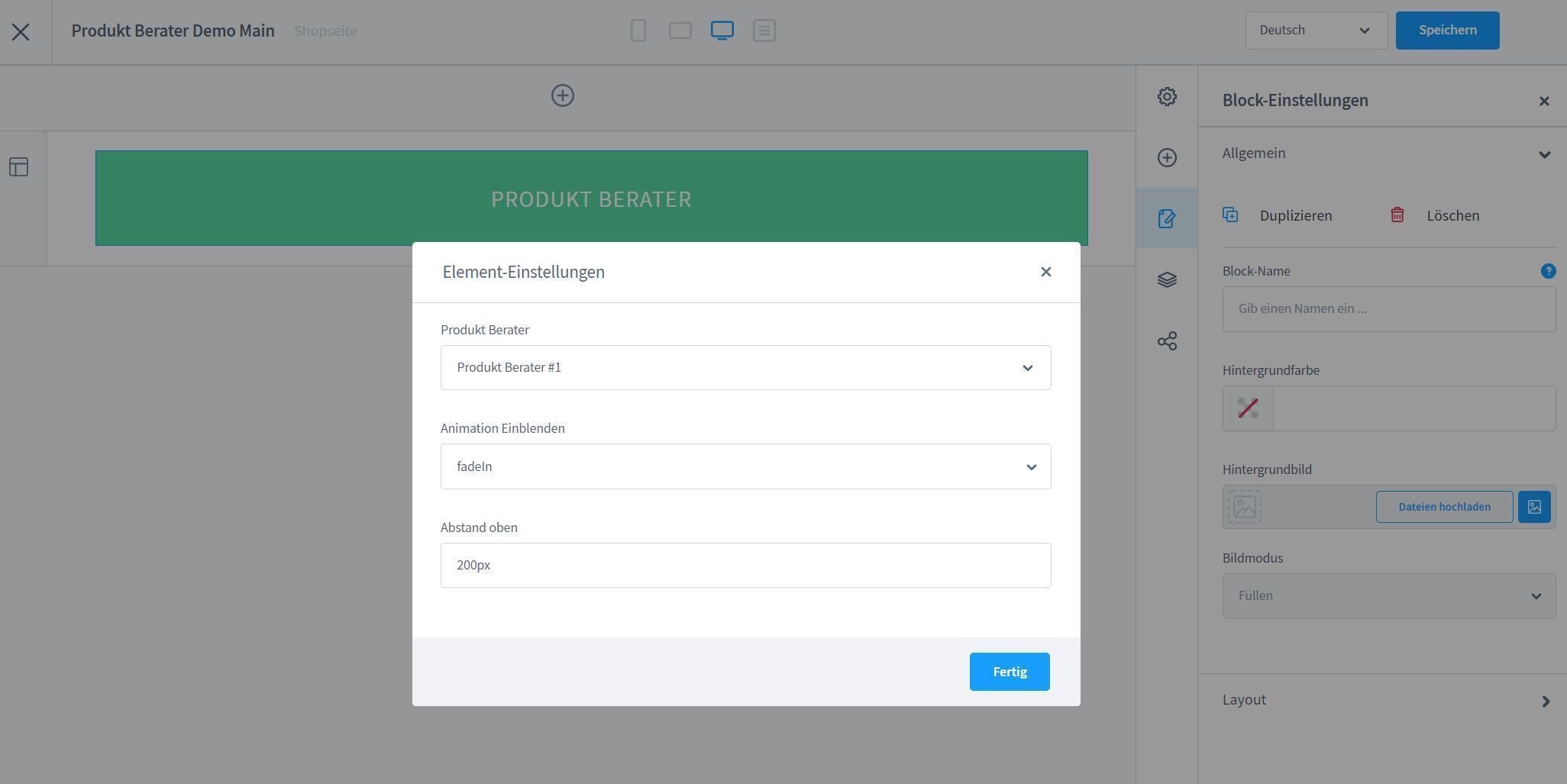 Jetzt kannst du deine CMS Seite erstellen, deinen Produkt Berater einfügen und im Frontend testen!