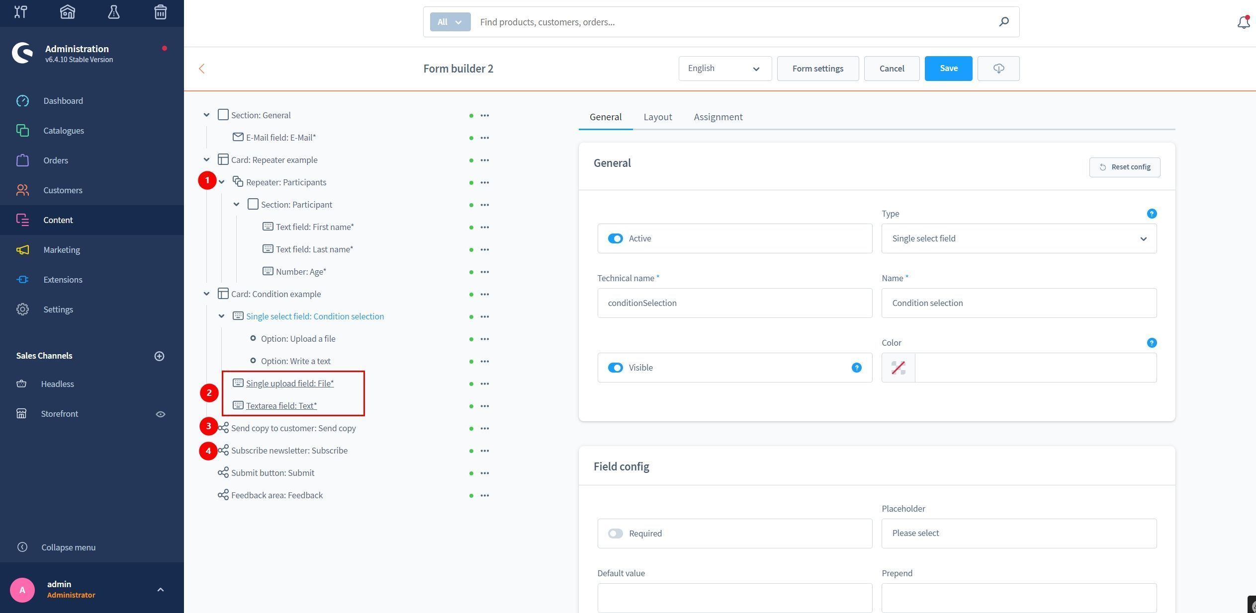 Konfiguration für "Repeater" Elemente