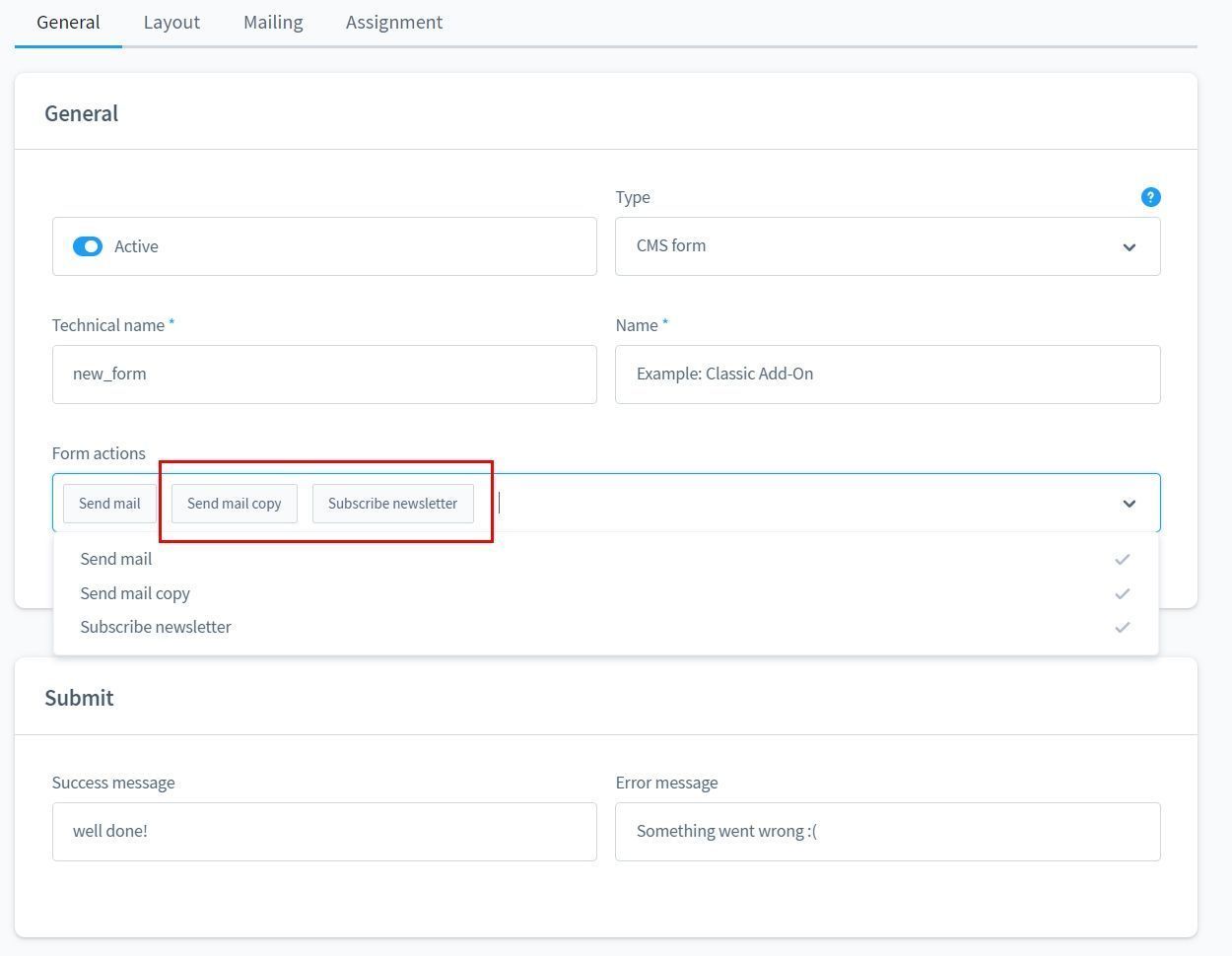 Formular Aktionen