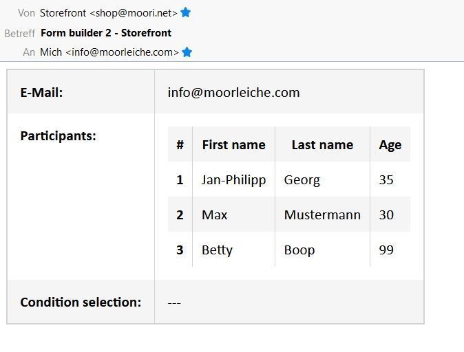 Beispiel der Ausgabe einer E-Mail mit einem Repeater-Element