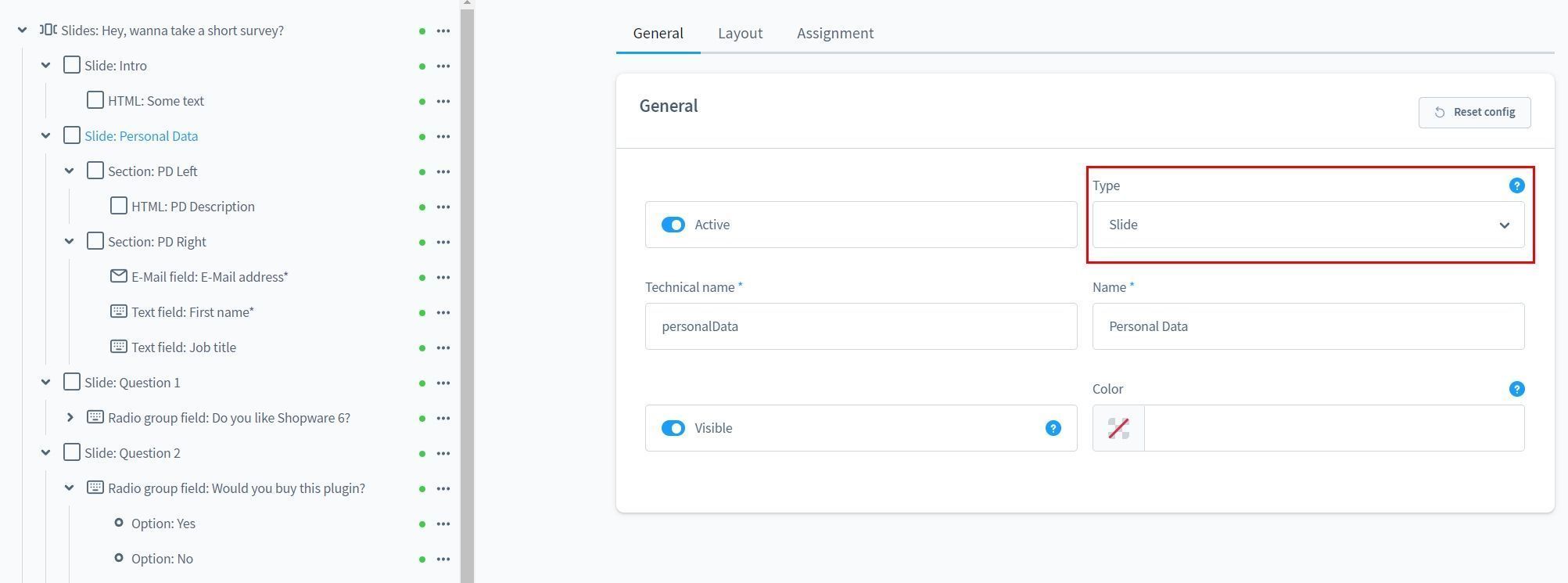 Das Element vom Typ "Slide" ist das Unterelement und kann beliebig oft verwendet werden.