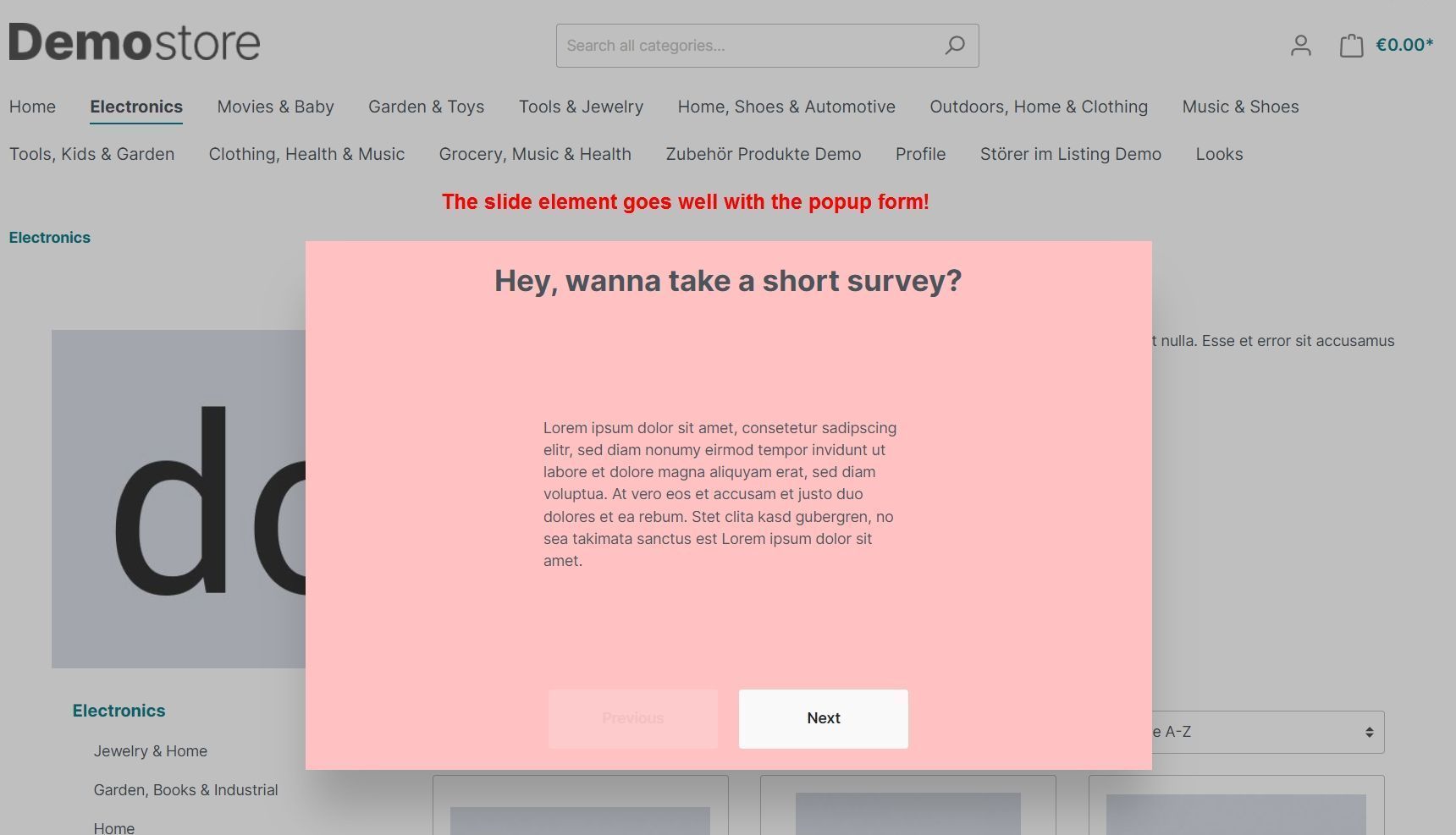 In diesem Beispiel habe ich das Popup-Formular verwendet. Die Slides sind aber auch für CMS Elemente tauglich!