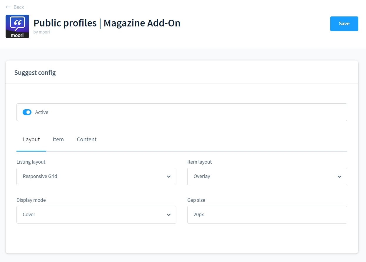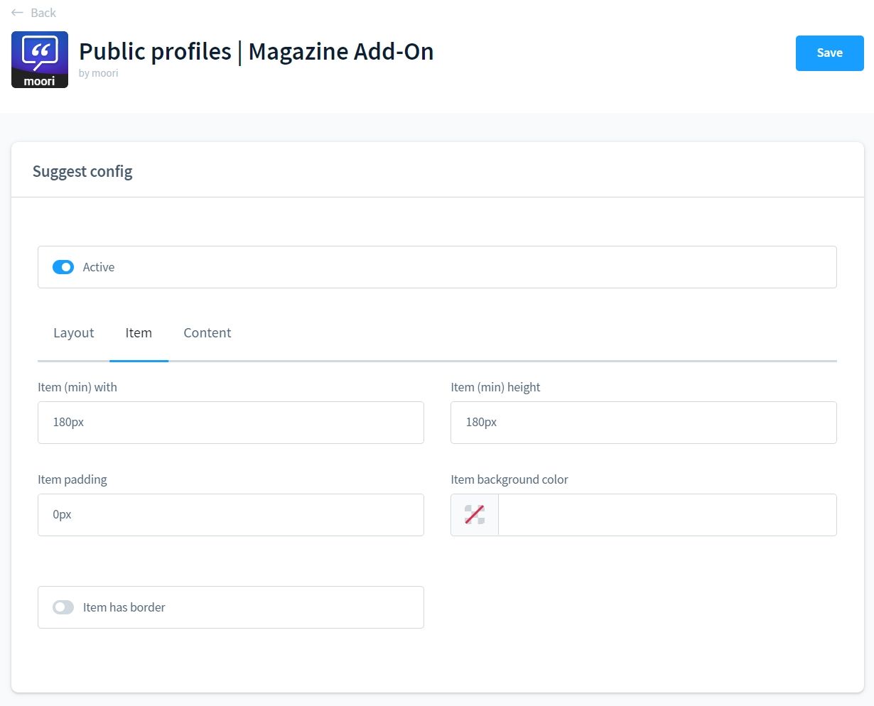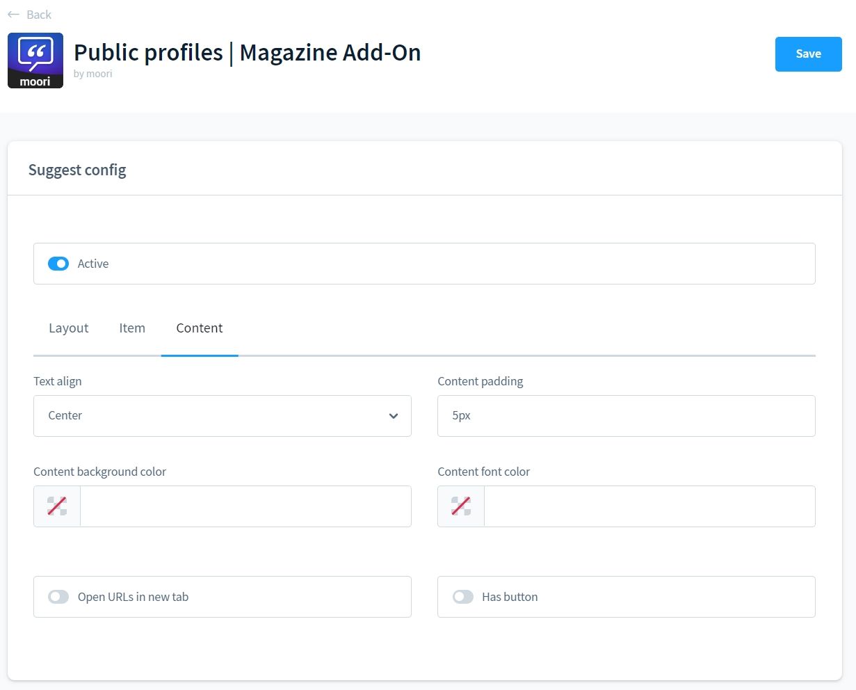 Nicht alle moori Plugins bieten dieses Feature an. Hauptsächlich Plugins, die eigene Datensätze beinhalten, wie z.B. das Magazine Add-On für Öffentliche Profile.