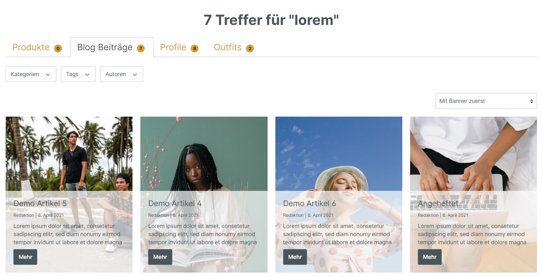 Das Foundation Plugin bietet speziell für alle moori Plugins eine erweiterte Suche.