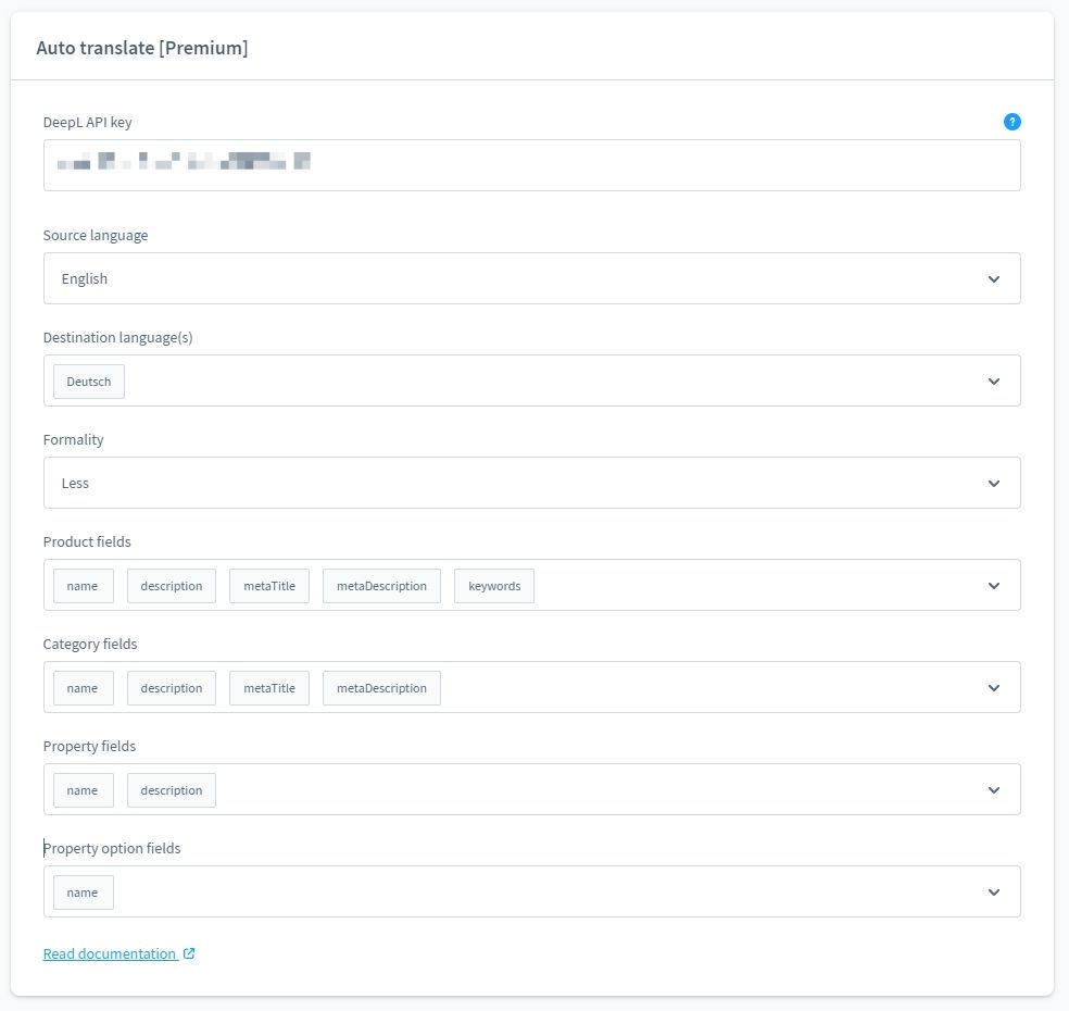 Ab der moori Foundation Version 1.4.800 kannst du ab sofort Felder automatisch übersetzen lassen. Dazu benötigst du einen API-Key von DeepL Pro. In den Plugin Einstellungen kannst du den API-Key eingeben. Dort lassen sich die Quell- und Zielsprachen bestimmen. Die Formalität bestimmt, ob du deine Kunden mit "Du" oder "Sie" ansprichst.