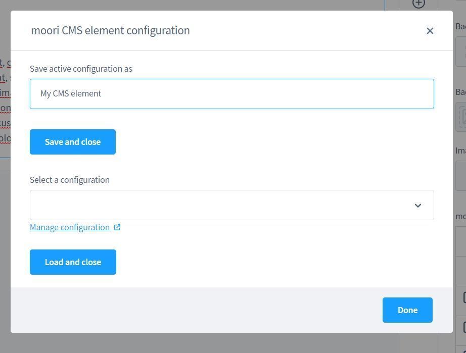 Elementkonfigurationen können gespeichert werden. So erspart man sich eine immer wiederkehrende Konfiguration für dasselbe Element.