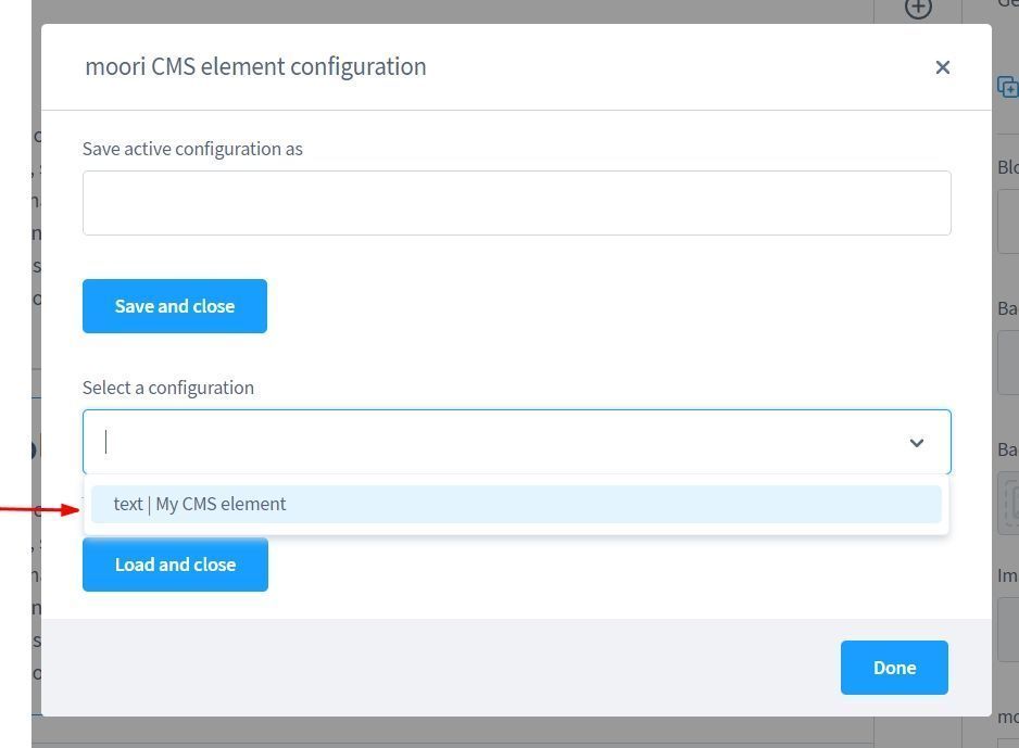 Die gespeicherte Konfiguration kann man über das Auswahlfeld bestimmen und anschließend in das gewünschte Element übertragen.