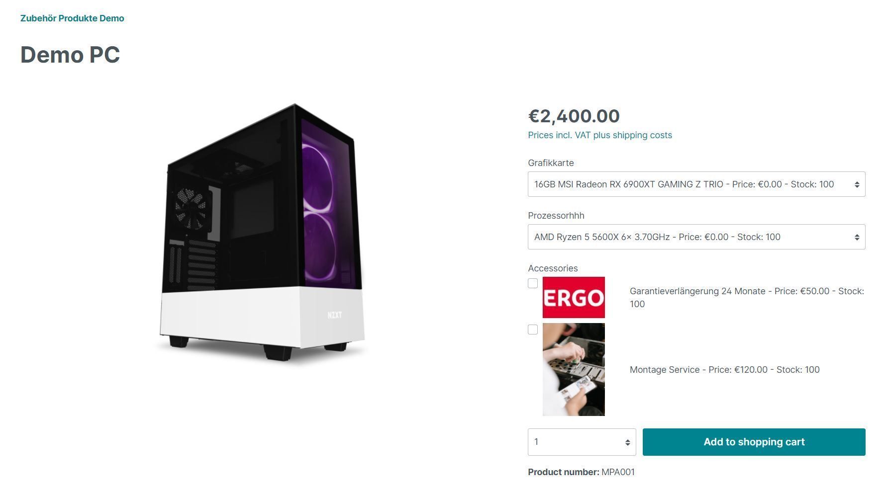 So sieht der Konfigurator auf der Produkt-Detailseite aus: