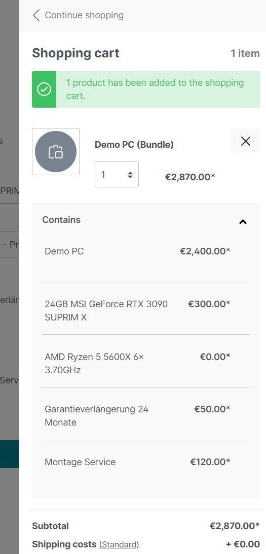 Dieses Plugin für Shopware 6 bietet dir die Möglichkeit, Produkt- und Zubehör-Bundles zu erstellen. Innerhalb von Bundles, kannst du individuelle Preise für das Zubehör bestimmen.
