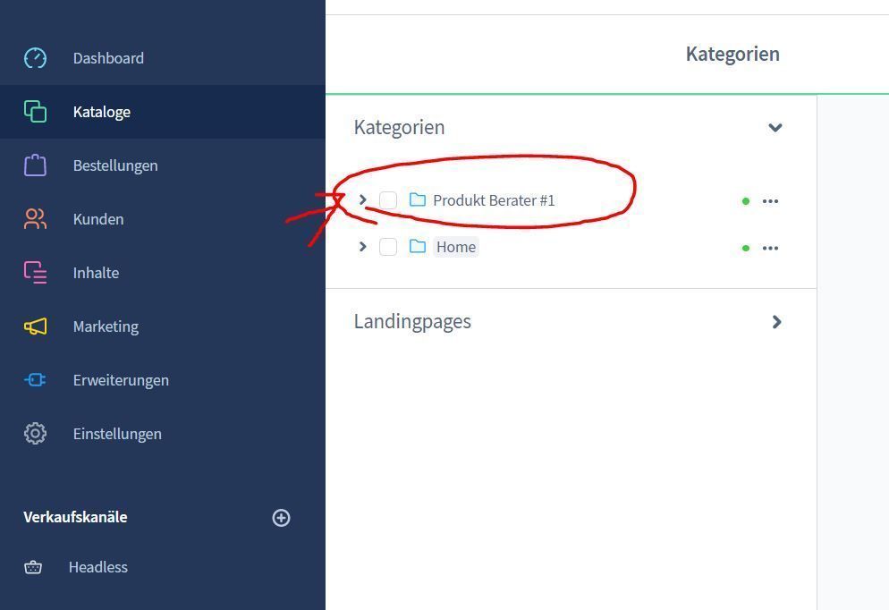 Die Entscheidungsstruktur wird über die Kategorien von Shopware erstellt. Lege dazu eine neue Kategorie im Root an und ersteller für jede Antwort eine Unterkategorie.