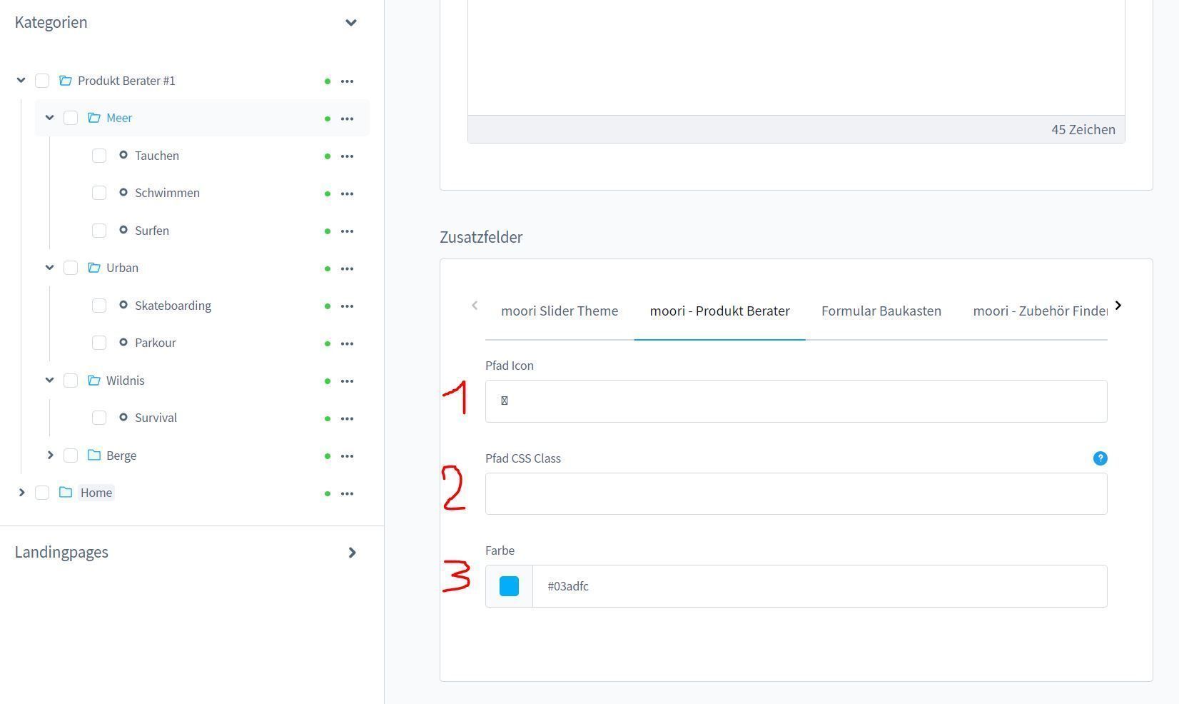 Je nach Entscheidung ändert sich die Farbe und das Symbol für den Pfad. Aktiviere im moori Foundation Plugin das Add-On FontAwesome!